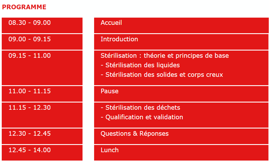 De la théorie au principes de base, cette formation permettra de voir comment mettre en oeuvre un processus de stérilisation et de qualification, contrôler les paramètres critiques …..